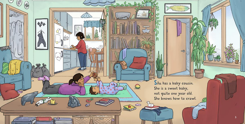 In this heartwarming story, a little girl helps out her busy aunt by packing her baby cousin in a cozy amaut. She walks her cousin and sings sweetly to her, finally lulling the fussy baby to sleep.